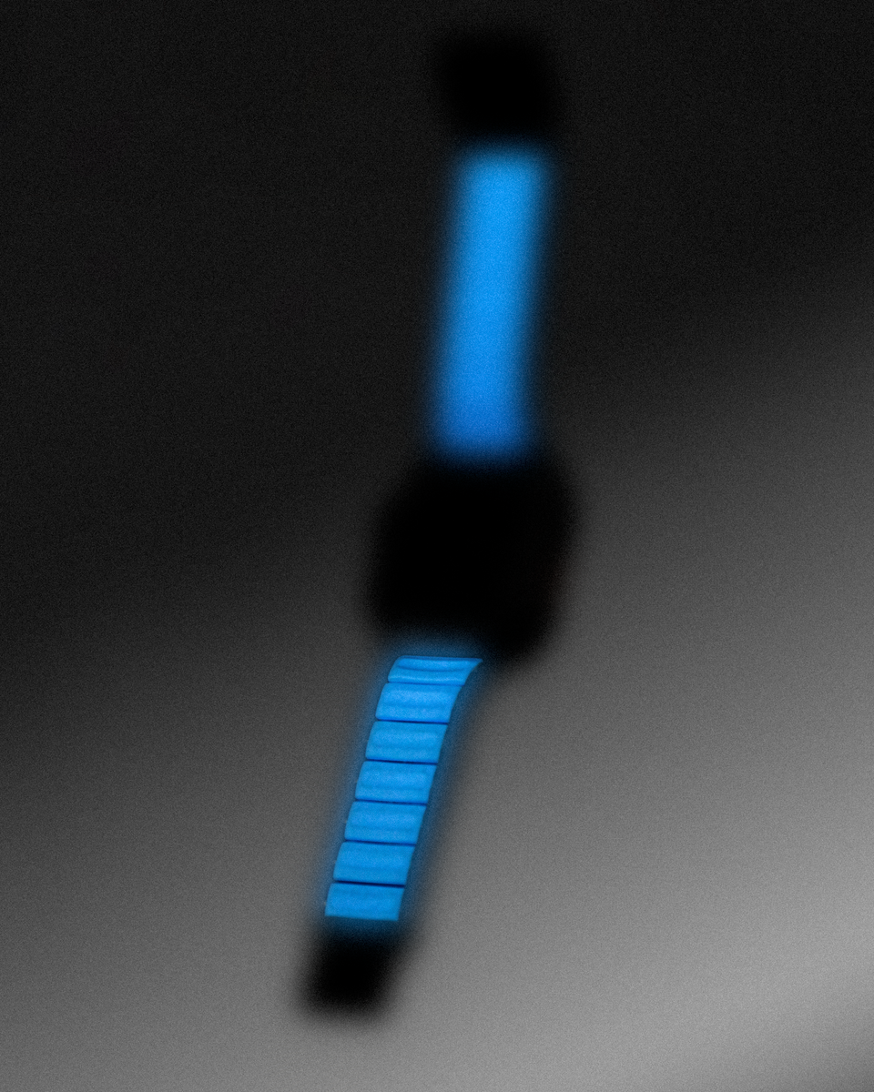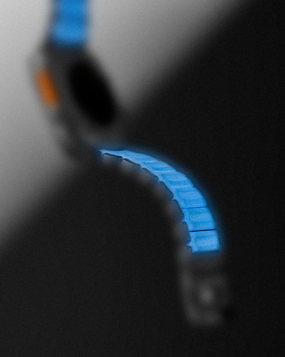 Stratos Band Icy Blue Glow is a Limited Edition drop of Nomad’s most advanced Apple Watch band. It keeps the precise, metal-like look and the comfortable, waterproof feel customers already love, now paired with a glow colour that stands out when the lights are off.