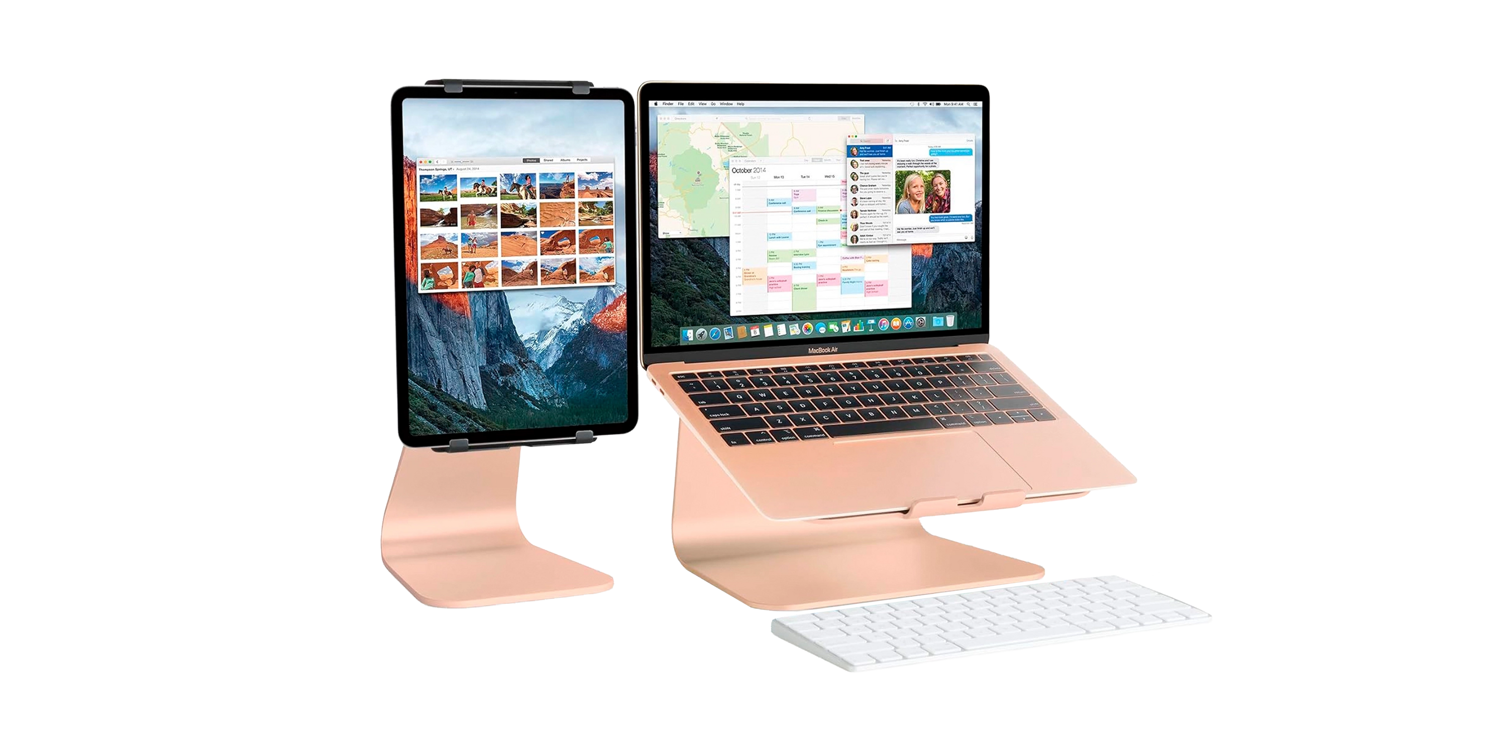 Transform your MacBook into a comfortable and efficient workstation with the mStand360. The integrated swivel allows you to share your screen with colleagues instantly, making collaboration simple and natural. By elevating your display to eye level, it helps reduce neck strain and improves airflow to keep your device running cool. Its solid aluminium design provides a stable base while keeping your desk organised, creating a professional environment for focused work.